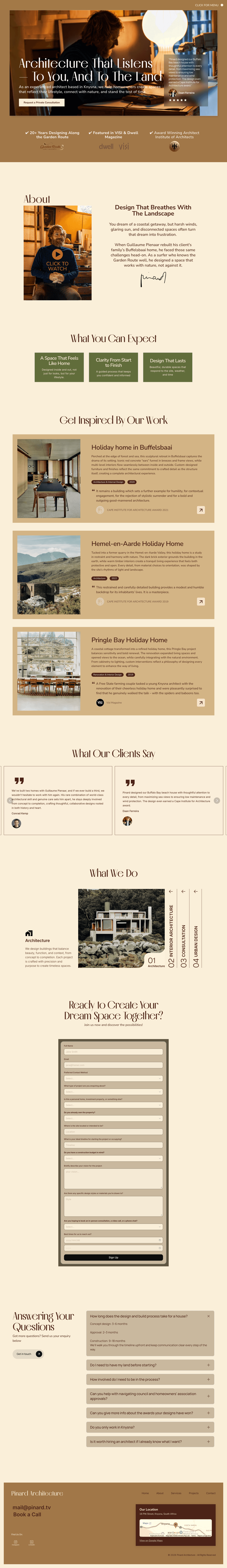 Pinard Architecture is a studio known for creating distinctive, thoughtful architectural designs and has received multiple awards for its work. The projects themselves speak to a strong design philosophy and careful attention to detail. The question we explored together was simple: how do we translate that same level of quality and recognition into the studio’s online presence so potential clients can immediately see it?