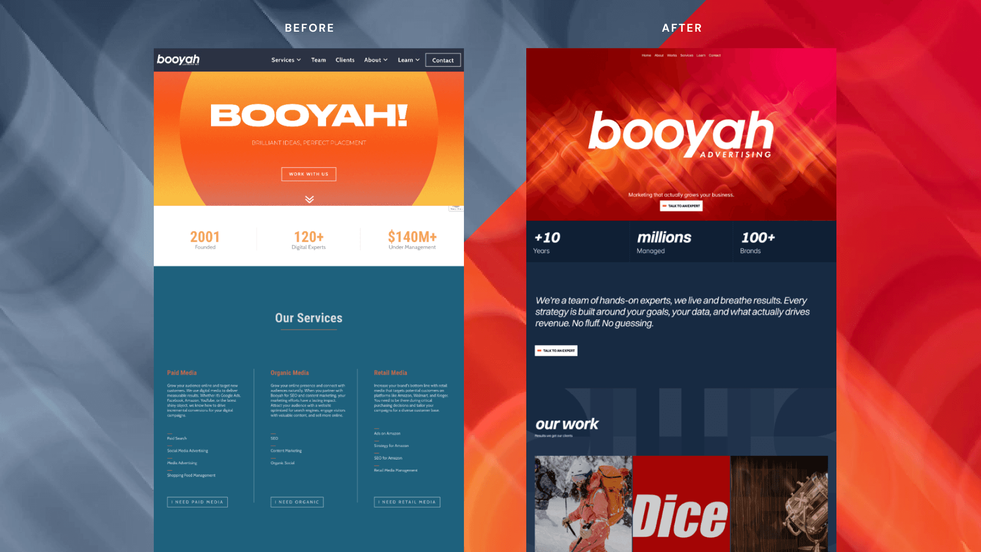 The new website gave Booyah a stronger presence online, helping them present themselves with greater authority, attract higher-value clients, and differentiate from competitors competing mainly on price.